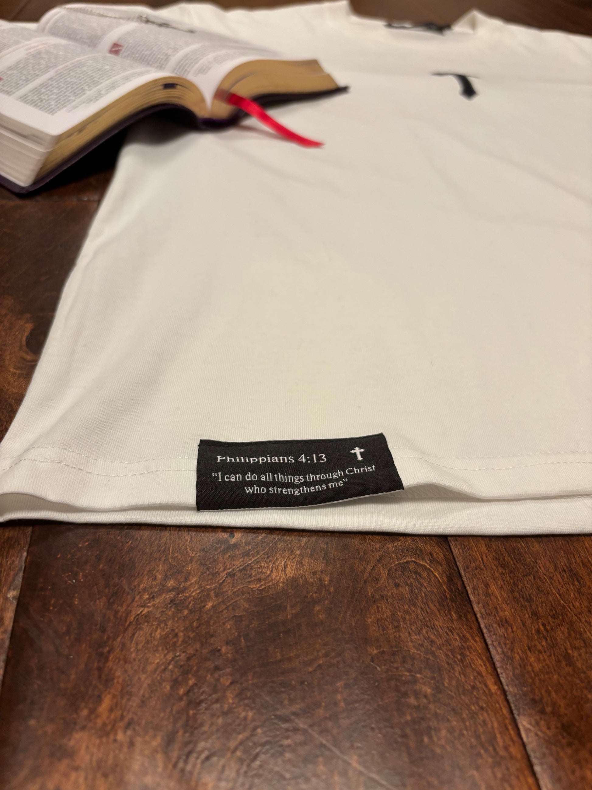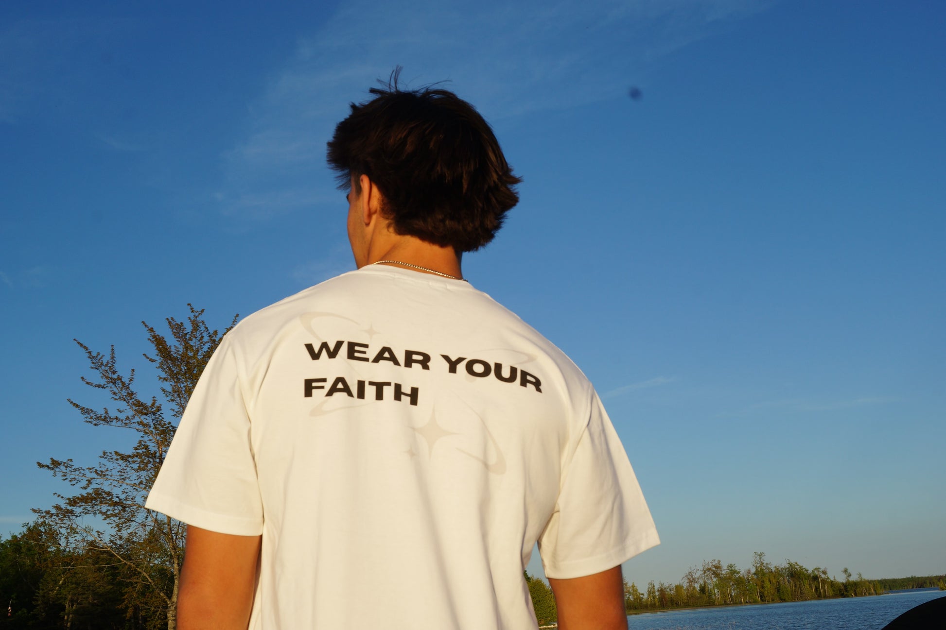 Screen printed graphics on back and patch design on front including stitch design on bottom left.